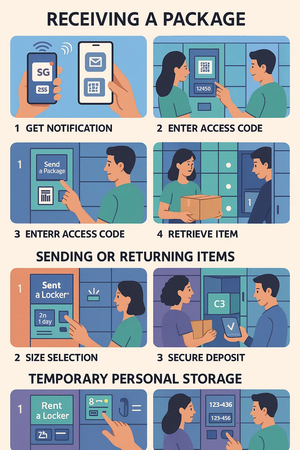 Gradus III: Secure Depositum Place Item intra, claudere ostium usque ad beeps et seras. Screen ostentat confirmatio receipt (salvum digitally / photo).