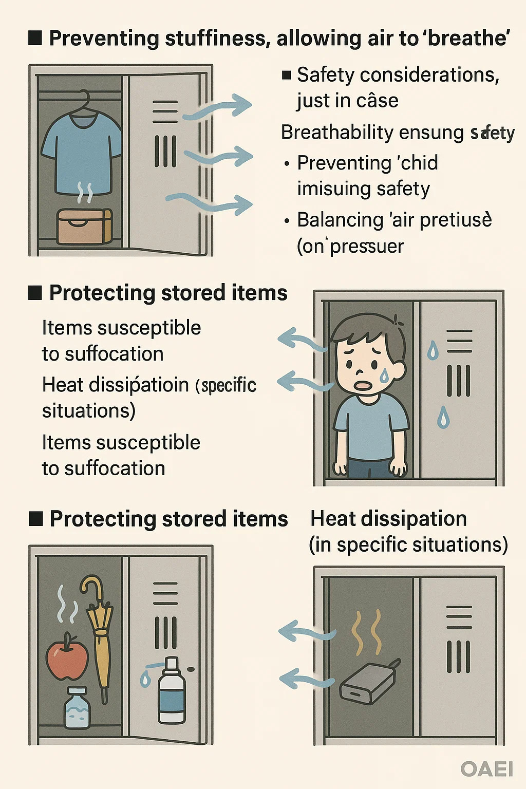 Discussio caloris (in certis condicionibus): Licet lockers ordinaria repositionis non sunt armamenta, si supellex quae calorem generant (ut nuper adhibita potentia argentaria vel parva adjumenta) intus ad tempus, VENTILATIO foraminum iuvare potest aliquid caloris dissipare, tutius illud faciens.